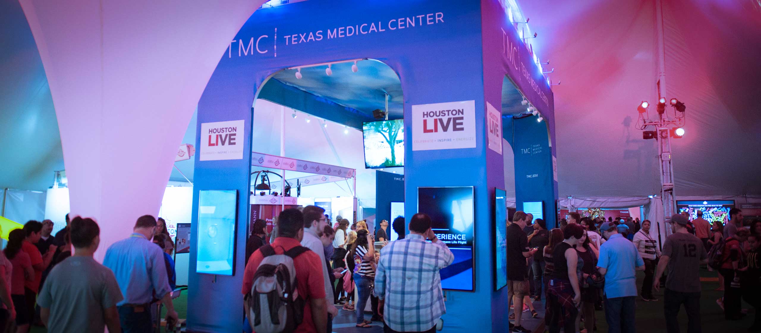 The Houston Super Bowl Host Committee showcased the best of our city with Super Bowl Live, an on-going event on Discovery Green and in the George R. Brown Convention Center. The event was the heartbeat of Super Bowl activities for ten days leading up the big game. Staging Solutions was invited to partner with the Texas Medical Center, a innovative leader in the medical industry. Together we set out to create a booth to showcase their most impressive programs as well as their vision for the future: TMC3 Innovation Campus (Helix Campus). The TMC Experience booth was free of charge to the million+ visitors expected at Discovery Green.